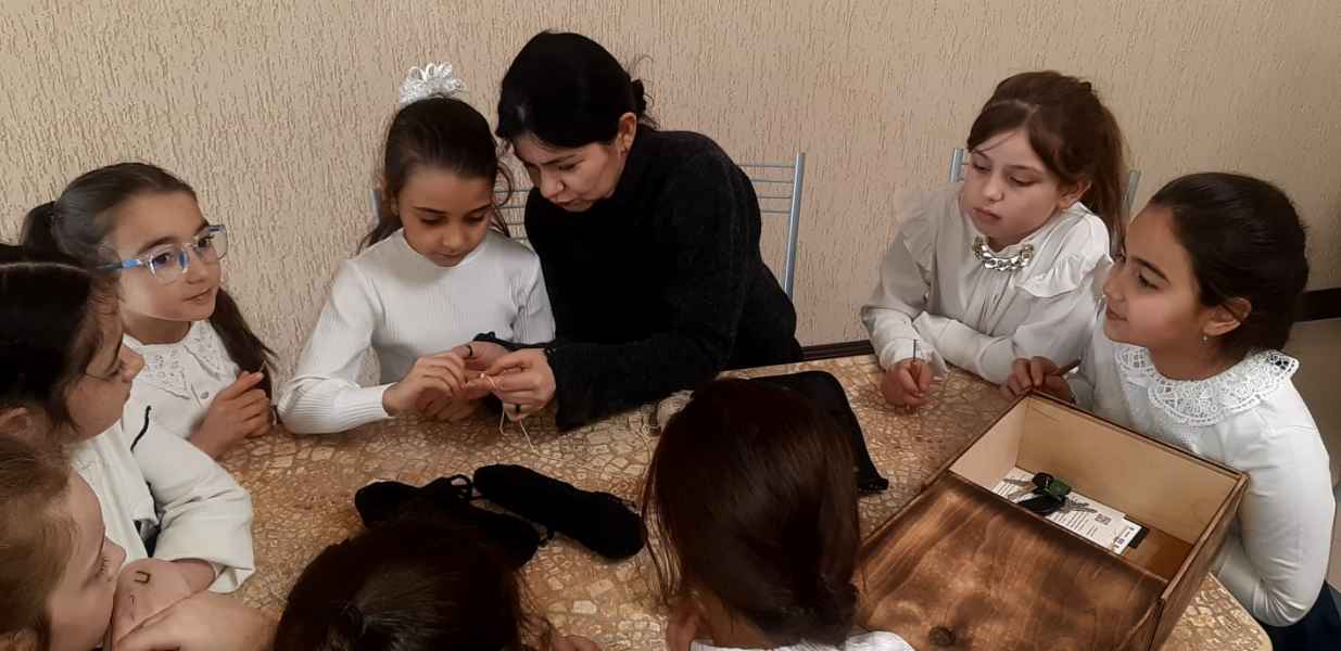 Помимо экспонатов, которые увидели зрители на передвижной выставке, мастера поделились с детьми секретами своего ремесла: по вязанию крючком - Зулифа Блягоз, басонному плетению Зарема Блягоз и Фатима Тхаркахова, старинным играм и изготовлению адыгской трещотки - Аслан Негуч, плетению адыгской циновки - Пщымаф Хабиев.