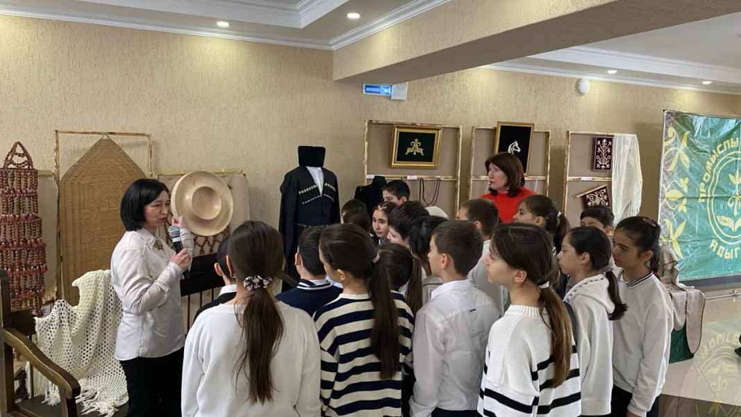 Автор проекта, член Ассоциации «Промыслы и ремёсла Адыгеи» Лариса Гумова рассказала жителям г. Адыгейска о замысле экспозиции – это показать детям в возрасте от 7 до 10 лет всю самобытную палитру народного творчества адыгов - от черкесского костюма и предметов быта до игры.