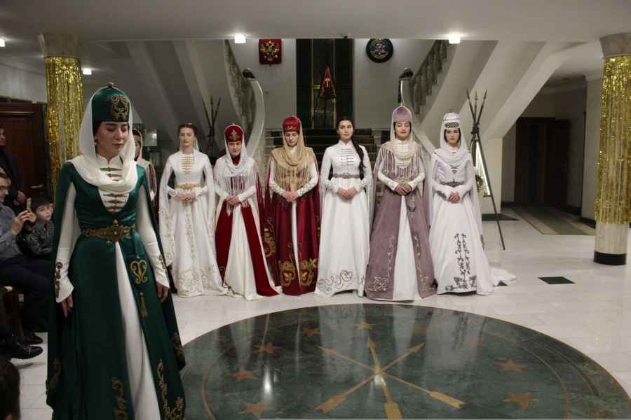 Выставка изделий мастеров ассоциации и показ традиционных женских нарядов «Сае» авторской работы модельеров Бэлы Боджоковой и Рузанны Чурмыт.