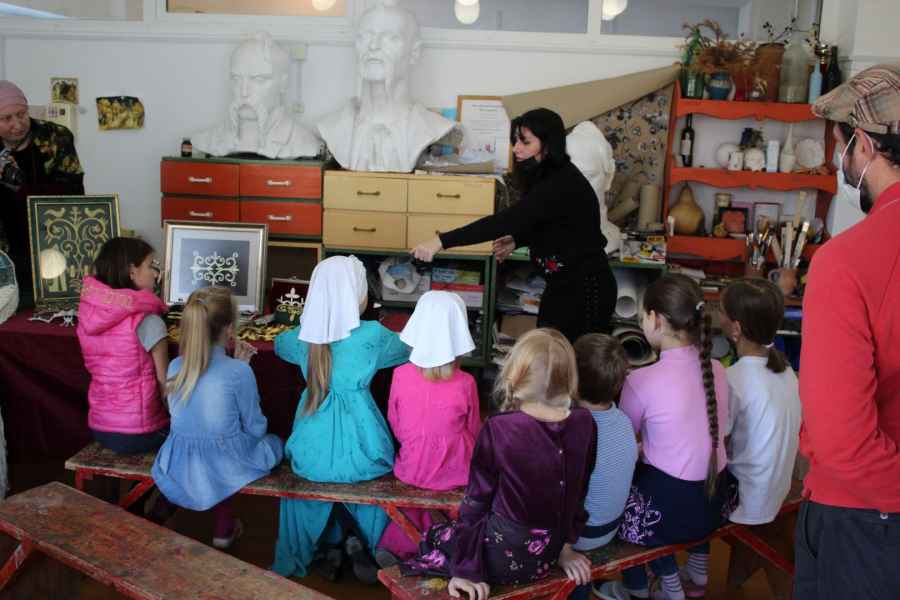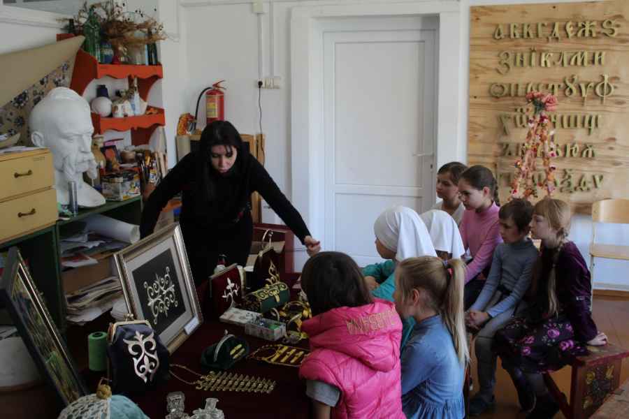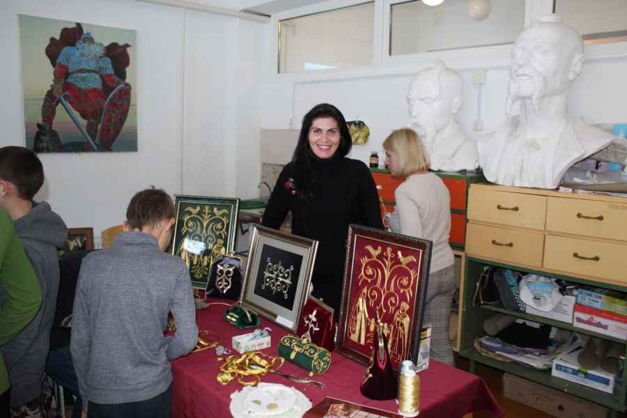 У учащихся школы была также возможность соприкоснуться с прекрасными этнографическими образцами традиционных ювелирных украшений, изделий золотного шитья и галунного ткачества из личной коллекции Боджоковой Бэлы.